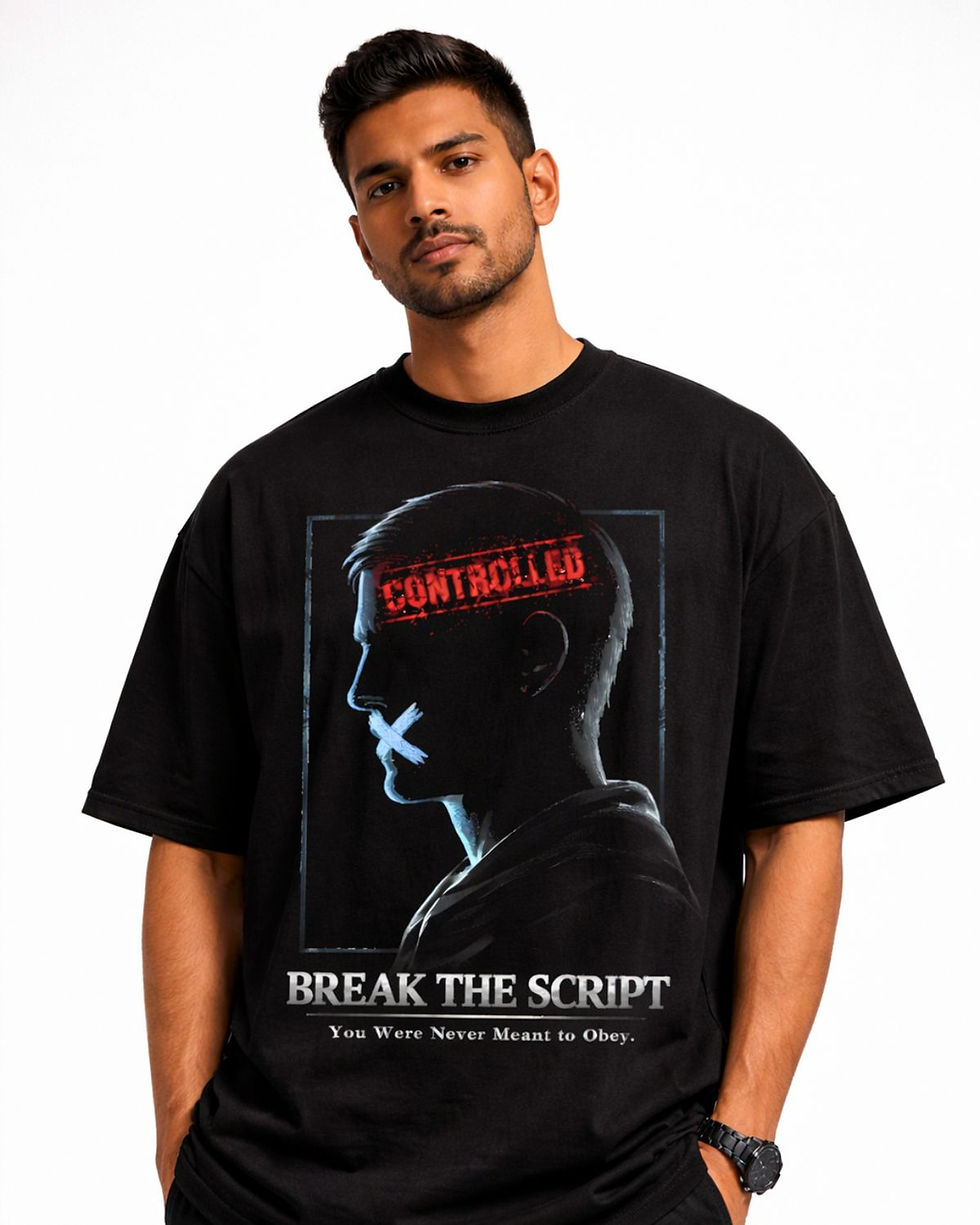 BREAK THE SCRIPT – Oversized Black Unisex 100% Cotton T-Shirt